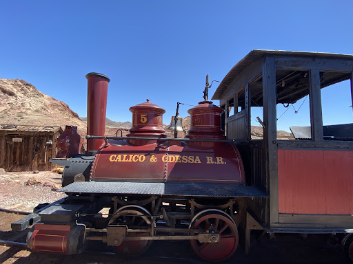 A small model train that goes in a circle around a hill. You have to pay per person to ride. It provides some cool views of the mountains and explains how miners staked claims on their territories and mines. There's also a cool view of a mine located far up the mountain called the...