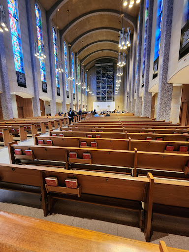 Read moreBeautiful church, well worth the stop if you’re just passing through. The way the sun shone through the stained glass was like the sun streaming through the trees in the forest that is the cathedral. The mosaic behind the altar is really stunning as well. It’s massively tall, so you can stand there and marvel at its beauty and wonder how long it took for them to put it all together. I loved the plants in the narthex as well, the olive tree was a very nice touch. Unique, too, as I’ve never seen it in any parish I’ve been...
