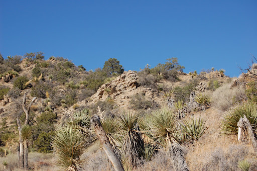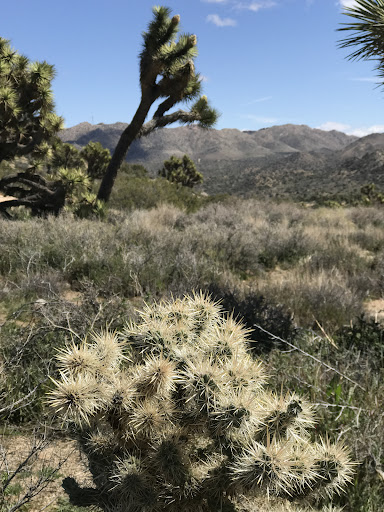 This trail actually goes in to Joshua Tree National Park, as evidenced by the small National Parks Service sign along the trail. Payment is not required to use this trail, so you can see some Joshua Trees and save some money. The trail is great, with beautiful panoramic views of the mountains and lots of nice trees and scenery. There is a podium at the top of a peak that has a sort of guestbook you can sign, but unfortunately people think it's funny to draw inappropriate things like in elementary school. Otherwise though it's an awesome trail and well worth it.
