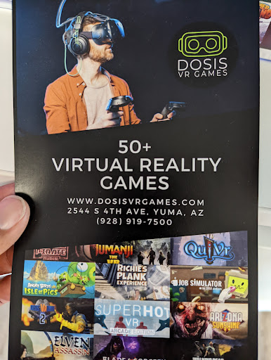 This is the only place like this in Yuma! The virtual reality experience was great. The staff was very helpful explaining game handles and controls. He also showed us how to maneuver through the system and chose different games. There are a lot of different games from role playing activity games to multi player shooter games that may be played as a team. If you have a group call ahead and make a reservation to ensure everyone can play. You can also walk in and jump on a...