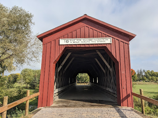 Read moreWell, I'll say this much - it's certainly the best covered bridge I've ever been on. Looking at the information packets later, there are photos of this in the last decade with snow having totally collapsed the roof to be flat - it's wild to see how you can't even tell now. The bridge is all wood, with new supports after being moved around a lot. It was a nice time walking down it. I didn't expect a thrill ride, but I got what I was expecting!