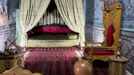 The next building of the palace is the hotel building. Its structure resembles a simple house in a stone courtyard and a view of the Old Ark. In the severe part of the stone courtyard, the Historical Museum was between 1945 and 1983. After the reconstruction began in 1976, the museum "Khorezm Crafting" was opened in the harem. This exposition still works today.