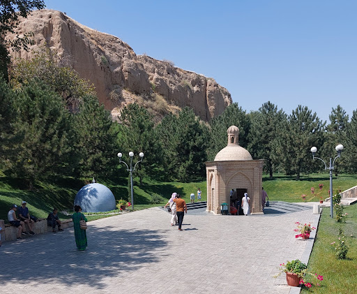 Мавзолей расположен на окраине городища Афросиаб, на возвышенном обрыве холма. У подножия мавзолея протекает река Сиаб, которая опоясывает парк растянувшийся по всей территории. Недалеко от кассы расположен святой источник, где Вы можете попить прохладной воды и освежиться. Само надгробие имеет длину 18 метров, и никто точно не знает, что захоронено и в каком именно месте, так же есть легенда, что из года в год, надгробие увеличивается...Но не смотря на все легенды, я точно знаю, что это место спокойствия и умиротворения не только для мусульман, но и для людей с другим вероисповеданием! С каждым годом цены на проезд(такси) увеличивается, хотя для самих горожан проезд будет стоить 2000 сам, но если вы турист, то договориться на эту стоимость не удастся...возможно сторгуетесь, но не на много. Таксисты очень упрямые и хотят содрать по максимуму денег, хотя ездят они на газе...Что бы уехать от мавзолея Вам нужно будет заплатить 4000-5000 сум с человека. Рядом со стоянкой расположены сувенирные магазинчики, где Вы можете приобрести...