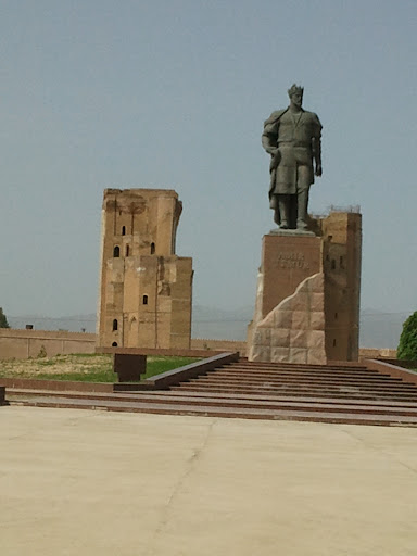 A partially ruined monumental iwan from the Aq Saray is all that remains of Timur’s legendary palace complex, the construction of which began in 1380 during his reign (1370–1405) and was completed in 1404. It was likely destroyed in the 16th century by Bukharian Khan Abdullah II.