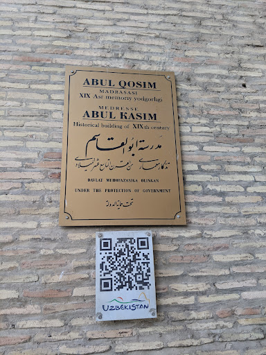 Read moreАБУЛҚОСИМ МАДРАСАСИ (Истиқлол майдони) – Абулқосим эшон, Маъдихон қози, Янги маҳалла мадрасаси деб ҳам аталган. Ўрта Осиё меъморлиги анъаналарида қурилган. Абулқосим эшон 1850 йилда қурдирган, шу сабабли унинг номи билан аталади. Бинонинг энг эски қисми – хонақоҳи Мўйи Муборак Абулқосимнинг отаси Эшонтўрахон томонидан 1820 йилда бунёд этилган. Хонақоҳ ичидаги равоқли меҳроби тепасига ишланган китобасида араб тилида шундай ёзув битилган: «Бу арк каби бинода Расулнинг латиф мўйи бор». Абулқосим мадрасаси дастлаб бир қаватли бўлган. Ўзига туташган масжид ва ҳаммом билан бирга қадимги Бешёғоч даҳасидаги маҳалла гузарини ташкил қилган. 1864 йил ҳовли қисмида иккинчи қавати қурилган.