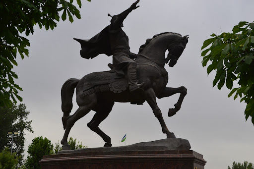 In the center of Tashkent's Amir Temur Square stands the equestrian statue of Amir Temur (Tamerlane), the legendary 14th-century conqueror and founder of the Timurid Empire. The statue was unveiled in 1993 as a symbol of national identity and pride following Uzbekistan’s independence.