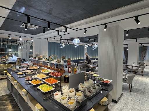 Quiet and very clean hotel. Our King Size room was absolutely huge! Bathroom was large too with toiletries provided. Their outside grounds felt like a small private park which was so quiet and relaxing to sit and unwind. Very near to Tashkent airport, but metro station is a little far. Highly recommend for anyone looking to be close to the airport. There is a nice local bazaar close by with no tourist prices! Staff were all polite and helpful. They allowed us to stay an extra day with no fuss. Restaurant hasn’t much options for dinner. Breakfast has ok options and coffee was bad provided from instant packets. A decent coffee machine would be most beneficial for your guests. Overall, a very good and comfortable hotel. Will recommend to family...