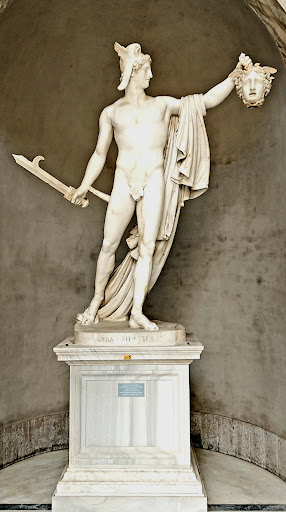 Il Museo Chiaramonti comprende, oltre alla Galleria Chiaramonti; il Braccio Nuovo e la Galleria Lapidaria con tavole ed iscrizioni in pietra ... Quest'ultima però aperta solo su richiesta. La Galleria Chiaramonti è allestita in quello che era un loggiato aperto, poi chiuso, del Palazzetto del Belvedere. Prende il nome da Pio VII Chiaramonti e segna un momento importante per la storia delle collezioni d'arte in Vaticano. Nel 1806 fu infatti dato un nuovo impulso alla costituzione di un nucleo omogeneo di arte antica. Nuove opere, provenienti dal mercato dell'antiquariato e da "scavatori" attivi nello Stato Pontificio, dettero impulso alla costituzione di un vero Museo. Poi il trattato di Tolentino (1797) obbligò il Vaticano a cedere in favore della Francia buona parte (ogni riferimento a Napoleone è ... chiaramente casuale) dell'ingente patrimonio artistico si lì raccolto. Solo con il Congresso di Vienna (1815) e l'apporto diplomatico di Antonio Canova consentì il rientro a Roma delle opere "sequestrate" a Parigi. Il Canova, tra l'altro, fu incaricato di riorganizzare la Galleria secondo un principio che intendeva preservare le "tre Arti Sorelle": la Scultura; l'Architettura e la Pittura. Viene celebrato il rientro da Parigi delle opere con un dipinto inserito nella lunetta della parete XXI. Il nuovo allestimento inserisce le opere più significative tra opere di minor livello e il risultato, con circa 1.000 reperti di arte antica, con esempi di scultura ideale, funebre e ritratti del periodo romano, è una delle collezioni più complete ed importanti in Italia. Fu sempre Pio VII a volere un nuovo padiglione, chiamato poi Braccio Nuovo, dove completare il Museo. I lavori furono affidati a Raffaele Stern poi, alla sua morte nel 1820, proseguiti da Pasquale Belli. L'allestimento, anche in questo caso, fu affidato allo stesso Canova ed una commissione di Belle Arti con Aurelio Visconti e Antonio d'Este ... nel febbraio 1022 fu inaugurato. La nuova fabbrica si inserì tra l'ala storica del Museo Chiaramonti e la Biblioteca Vaticana. Il Braccio Nuovo si articola in 68 metri ed è coperta da una volta a cassettoni con lucernari. Al centro da un lato si apre un emiciclo dall'altro l'uscita che consente di accedere al Cortile della Pigna. Le pareti sono scandite da 28 nicchie dove sono collocate statue di dimensioni maggiori al vero, come ritratti di Imperatori e repliche romane di famose opere elleniche. Presenti anche busti di celebri personaggi dell'antichità. Si segnala, tra l'altro, la Statua di Augusto Loricato, detto di Prima Porta, rinvenuto nel 1863 nella Villa di Livia Drusilla; la statua di Athena Giustiniani (Minerva) copia romana del II secolo d.C. di un originale greco raffigurante Pallade Atena; due splendidi Pavoni in bronzo dorato; il Doriforo di Villa Adriana, la copia romana di Policleto del 440 a.C.; Sileno con Dioniso infante del I secolo d. C., copia romana di una statua in bronzo di Lisippo; il Gruppo raffigurante il Nilo con i suoi affluenti, rinvenuta nel 1513 a Campo Marzio, dove probabilmente decorava il Tempio Iseo Campense, dedicato alle divinità egizie...