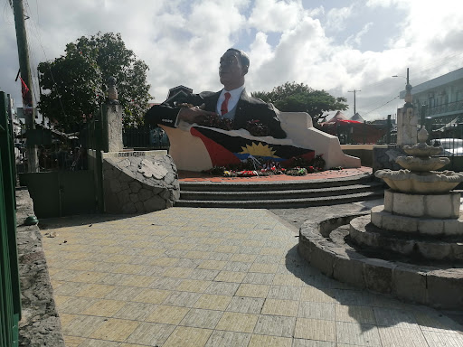 The VC Bird Monument is situated on what was originally the Market square at the junctions of (the commencement) Marker Street, New Street and The All Saints Road. The much larger than life fenced monument is essentially a concrete statue from the waste up of Antigua and Barbuda's Former Prime Minister and late National Hero.
