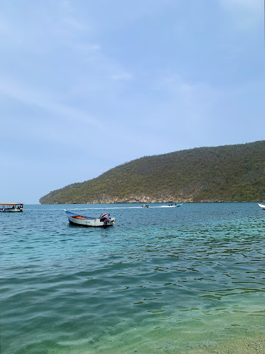 This beach is difficult to reach by land. Most visitors arrive by shared boat transport from Pier Baritina (Embarcadero Baritina) prices are reasonable and include "ida y vuelta" keep the ticket for the return trip. On the beach there are various restaurants and bars offering food and drinks. My favorite was the corn on the cobb. Keep in mind that everything is brought to the beach by boat transport, and therefore is more so if you're on a budget bring your own food and drinks.