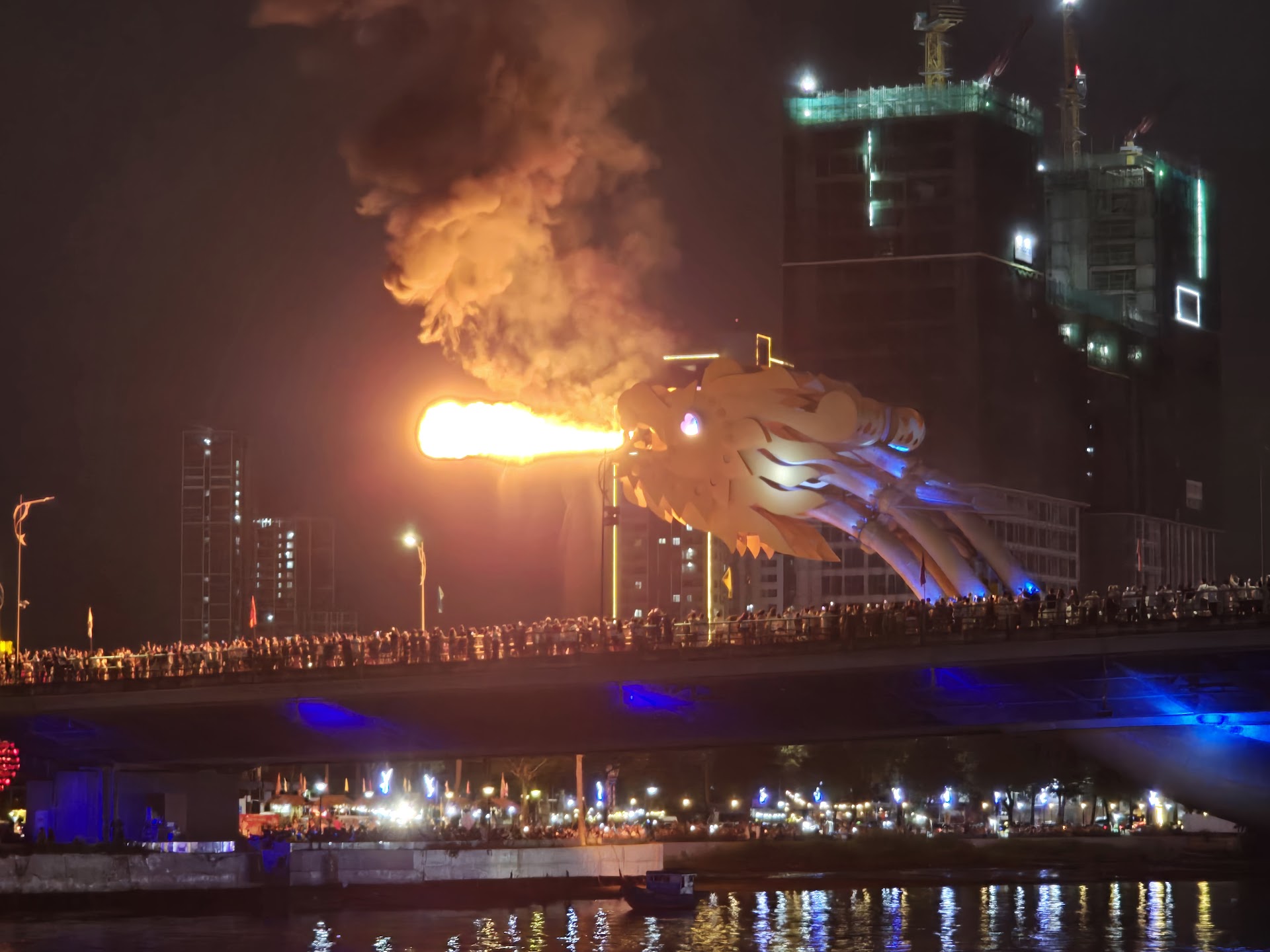Cruise Experience: Once on board, it’s a calm and beautiful ride down the Han River, passing by Da Nang’s famous bridges like the Dragon Bridge, Han Bridge, and Tran Thi Ly Bridge, all lit up beautifully. The highlight was seeing the Dragon Bridge’s fire and water show (on weekends), right from the river—truly a special view!