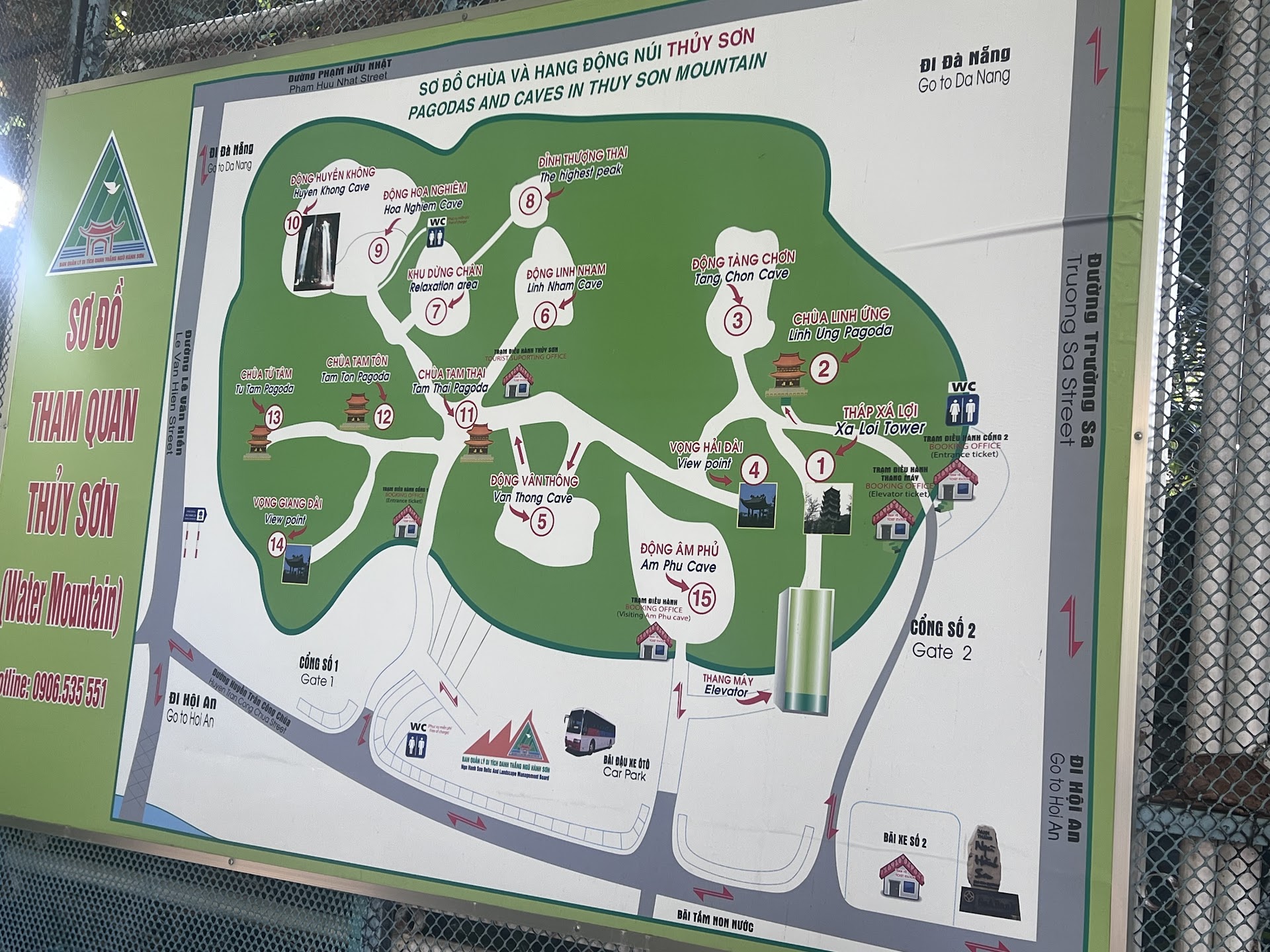 Take a taxi to Gate 2 – that’s where the elevator is, and where you’ll find the entrance to Am Phu Cave. After exploring it, you can buy the main entrance ticket for 40,000 VND per person, and an elevator ticket for 15,000 VND (this is one-way – going up). No need to buy the return ticket now – if you’re too tired later, you can get one at the top, right next to the elevator.