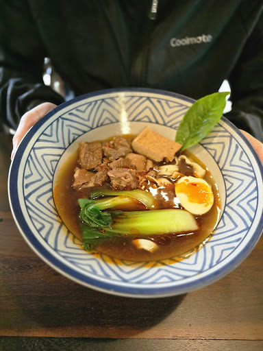 Về món ăn, mì nước dùng thơm lắm, bò dai, mì dính cục. Cơm thì mình thấy bình thường không có gì đặc biệt, mình thấy mì ổn hơn cơm, nước trà thì ngon, trứng...