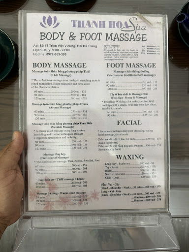 Read moreIf you come to Thanh Hoa as a man, you will have a very different experience than if you come as a woman (like myself). As a woman, you will be offered a straightforward normal massage. Their signature T&V massage feels good on the back, but it’s underwhelming on the legs and arms. On the legs and arms, they use a repetitive grabbing technique.