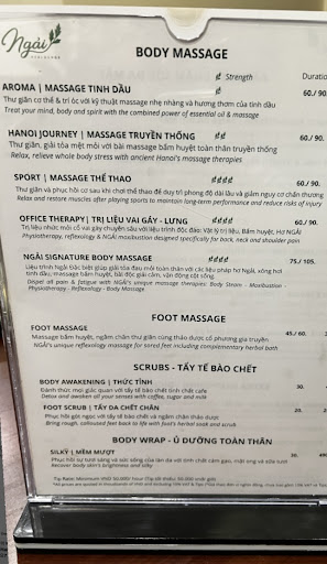 Read moreMy recent visit to Ngải Spa Foot Body Massage for an office therapy massage, expertly delivered by Ms. Nhan, was a genuinely rejuvenating experience. The skill and attentiveness she brought to the session were nothing short of exceptional, ensuring every tension point was meticulously addressed. However, it's important for future visitors to note that clarity in communication regarding the service you desire is crucial. Due to a misunderstanding, I paid for the Ngai signature body massage, which was 100,000 Vietnamese dong more than the office therapy massage I thought I initially requested. While the quality of the massage was undoubtedly worth it, customers should make their preferences explicitly clear to avoid any surprises in pricing. I had an amazing experience, and would definitely go back for another massage, and the tea and cookie provided at the end...