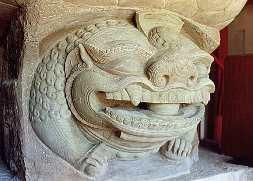 Chòm lông đuôi và tấm lá chắn phủ trên thân tạo thành ba vòng xoắn ốc lớn lật qua, lật lại rất cân xứng, hình hoa cúc dây ken nhau liên tiếp làm nền không những làm cho thân sau không trống trải, mà còn cho người xem có cảm giác như con vật đang di chuyển. Tất cả, chúng nổi lên dày đặc mà vẫn mỏng manh, nuột nà, chi tiết rõ ràng. Những cánh sen xòe rộng trên môtíp đài sen mãn khai, được chạm khắc tinh xảo, có bố cục chặt chẽ. Sự có mặt của những họa tiết này cùng với thủ pháp điêu luyện trong tạo hình đã chứng tỏ rõ ràng một sự xác lập vững vàng trong phong cách tạc tượng thời Lý. Các chi tiết trang trí được diễn tả rất tinh tế và hiện thực, khác hẳn với tính quyền lực, áp chế trong các hình tượng nghệ thuật thời Lê Sơ.
