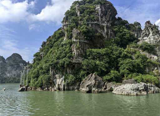 Hạ Long Bay, in northeast Vietnam, is known for its emerald waters and thousands of towering limestone islands topped by rainforests. It's UNESCO World heritage site. We had one day trip to Halong Bay to experience Junk boat tours and sea kayak expeditions to Stone Dog and Teapot islets. The region is popular for scuba diving, rock climbing and hiking, particularly in mountainous Cát Bà National Park. We also visited a big cave on an island and Titop island on the way. The lunch buffet was included...