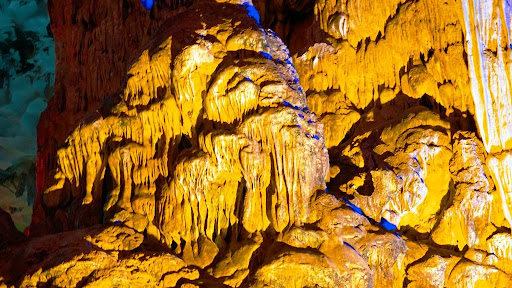 Vietnam has many attributes of history within it. To name a few, it has ancient culture, a history of warfare and military activities, geographical and topographical variety and the UNESCO world heritage wonder – the Halong Bay, with a unique feature of numerous limestone karsts emerging from the sea bed appearing like, what the legend has, the dragon’s teeth. Tourists have to take a cruise boat to sail through the karst infested lake of sea water. These karsts big as well as small are also called islands. It is on one such island named Bo Hon that the Cave of Surprises is located. This was discovered by a French man in 1901 (the French have a deep rooted connection with the Vietnamese. But that’s another story) and opened to tourism some 92 years later on.