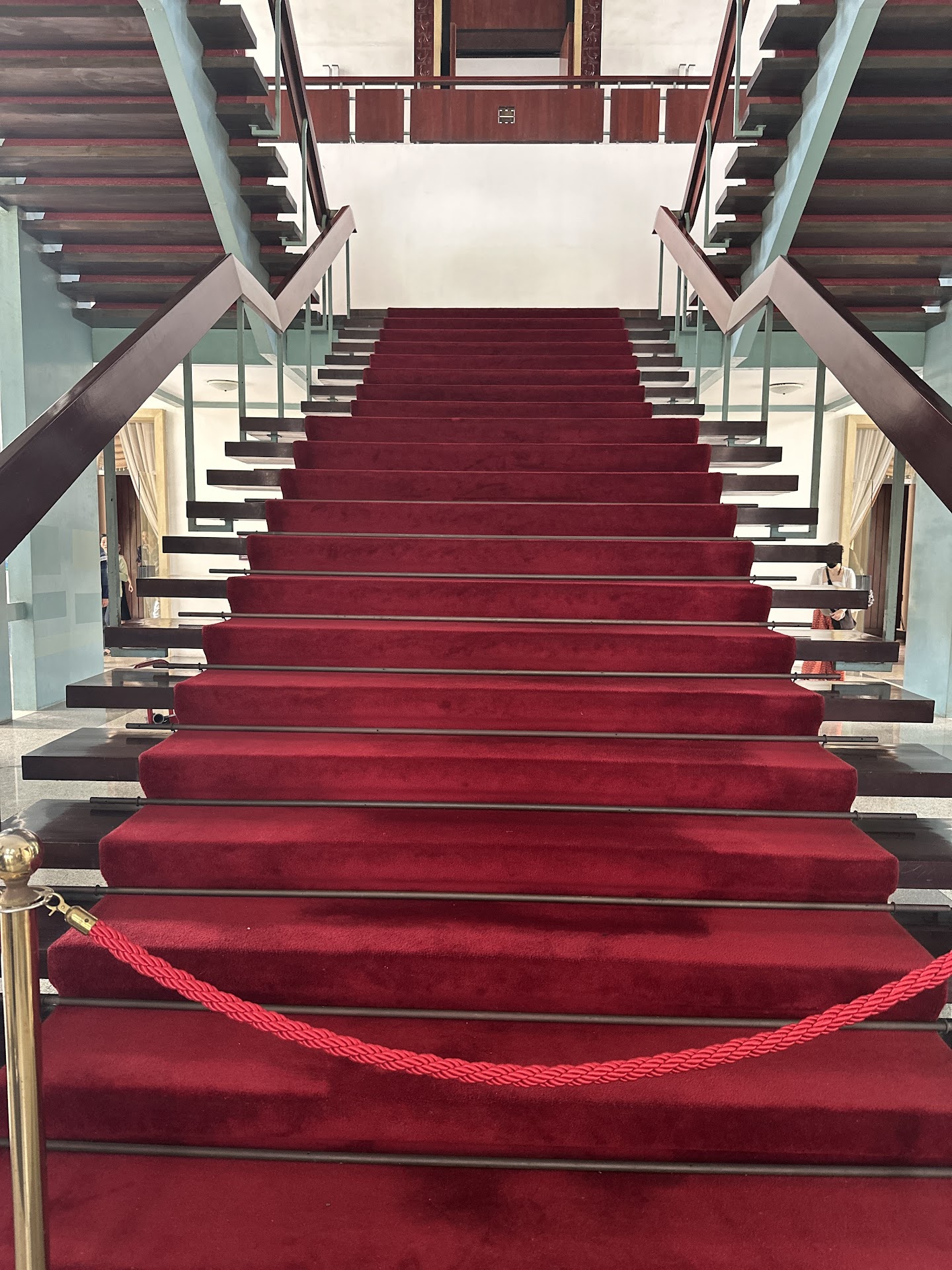 From afar, the Palace stuns with its unique modernist design. Designed by Vietnamese architect Ngô Viết Thụ, it's a blend of brutalist concrete and traditional Vietnamese influences. The open, airy facade feels almost weightless, while the geometric shapes and soaring columns exude a sense of power. Stepping inside, you're greeted by a symphony of marble floors, polished wood panelling, and intricate gold detailing. Each room is a treasure trove of opulent furnishings and period décor, from the plush velvet sofas of the President's office to the kitschy chandeliers of the Cinema Room. It's a fascinating glimpse into the world of South Vietnamese elites during the Vietnam War.