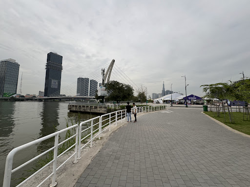 Beautiful buzzing vibrant area near the riverfront. We went there in the evening. There was a marathon happening so the entry for vehicles was closed. We were coming from Ben nghe book street and had taken a cab. The cab took a detour since the entry was closed. There was a nice musical and water event happening. Life music, songs, water sprinklers theme of save water. Then you walk by the riverside it’s so beautiful and decorated and well lit up. The park is beautiful with beautiful flowers. 5 star hotels on the other side. There is a nice play area too and there are nice food stalls and seating. You can enjoy the vibes sit and eat. There is about ride too but that closes at 6.30 pm. Walk across the riverside is...