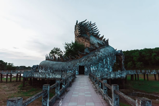 So, this abandoned water park outside Hue has been closed for some mysterious reason since 2006, but it's famous for this epic dragon head sticking out of Thuy Tien Lake. You can walk across the bridges to the dragon's head and climb up the inside stairs for some great views from its mouth. Heads up, though: the place is falling apart and can be dangerous. It's an unofficial thing, so you just pay the guard at the gate.