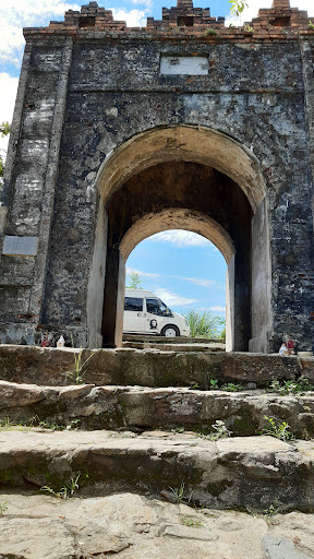 Trên đỉnh đèo Ngang hiện còn di tích của cửa ải Hoành Sơn Quan là một cái cổng bằng gạch đá được xây vào năm 1833 thời vua Minh Mạng để kiểm soát việc qua đèo. Người dân địa phương thường gọi nơi đây là “cổng trời”, có nghĩa là điểm cao nhất của vùng đất này, ví như lên đây là có thể đến được với trời rộng bao la vậy. Sau khi vượt hàng nghìn bậc đá uốn lượn theo sườn núi, chúng tôi chạm tới “cổng trời”, đứng ở đây tha hồ ngắm trời - đất - biển nước mênh mông. Núi non trùng điệp kéo dài tít tắp, xa xa là nhà cửa làng mạc trù phú, từng ô ruộng như bàn cờ vào vụ chín rộ màu vàng và thấy được cả những đoạn đường lượn quanh ôm dưới...