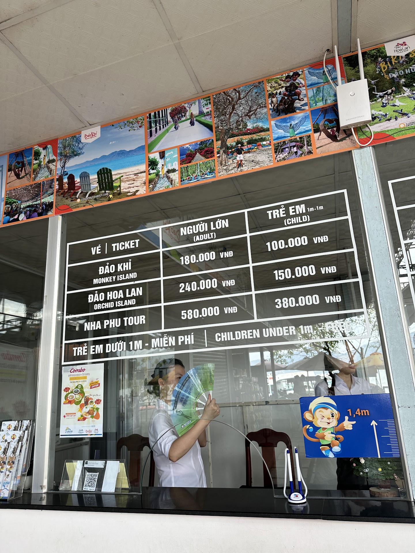 But In any case, for those who do want to arrive, important information: bananas are bought before boarding the boat at the ticket booth - 20k rather than 35k inside. Price list attached in the pictures, 180k for ticket. A return boat leaves approximately every half hour. We were there for half an hour, gave the monkeys some food and left as quickly as possible. Tha monkeys aggressive between themselves but we didn’t experience it on humans. You just need to respect their territory and land, and be assertive if you hold bananas because they will test...