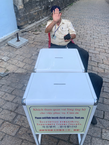 We then walked up to the church and had a look at the outside, before trying to go in. Another local man in a uniform physically held up his hands in a 'no' gesture and barred us from being allowed in. There was no service going on and a few local people sitting inside - we wanted to sit quietly at the back and look at the architecture. We also saw other non-Vietnamese being turned away. I can only assume we were barred entry for being foreign/white. This would NEVER be allowed to happen in the UK, because churches are places where ALL are welcome, regardless of your race, background, gender, or ethnicity.