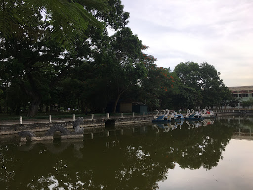 It’s a scary park. Everything looks abandoned and creepy. There is this abandoned big wheel, stray dogs running around, barking at you and following you, a really odd-looking little zoo with monkeys and a crocodile whose conditions don’t look humane at all, a big, dirty lake with empty and lonely swan boats... Everything there has some shade of gray, it looks like nobody takes care of it. And then there’s this big communist monument. It has its atmosphere but it’s...