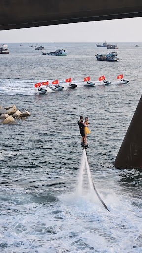 Read moreI bought tickets because I really wanted to ride the impressive 8km long cable car. I had little expectation for the theme park, thinking it's just another one of those. But wow, it surprised me. I bought a combo of cable car & buffet lunch & kiss bridge tickets (there are no tickets only for cable car). Firstly cable car views are amazing, the cabin is extremely huge - it fits 30 pax. You see an amazing view of the clear turquoise waters, only downside is government must launch an active programme to do massive cleanup of all the debris lodge in between the rocks of every pretty island. There's so much rubbish spoiling the sights. Next - I thought that was it, best part of the day done. I was wrong. The buffet was a crazy amazing spread of food. There was a large selection of grilled seafood, meat, even a leg of cured ham!! And the hula like dancers that suddenly bounced into the restaurant did a really good job with their dancing. Certainly alot of money spent on quality dancers and the landscaping with aquamarine artsy statues, beautifully landscaped park is amazing. No area was left out of the landscaping! The slides were a good mix of thrills and milder ones. Kids even had ample kiddy pool space with water guns and kiddy slides. To my surprise, my ticket even allowed me on 'dry' rides. There was a obsertavory ride (suitable for even senior citizens) that brought guests upwards for a 360 view of the landscape and for daredevils, a very beautiful wooden roller coaster! The only meh of the place was the lacklustre beach - greenish water, coarse brown sand (but this is expected through much of phu quoc island). They could have put a drinks stand right on the beach not sure why this was the only area that felt 'unplanned'. Once I got back to the main island via cable car - proceeded to Kiss Bridge and once again was surprised by a very good flyboard show at the bridge. They actually had some record holding flyboard athlete as part of the performance! Talk about really investing in their shows and park experience. I came with very low expectations, left feeling amazed over...