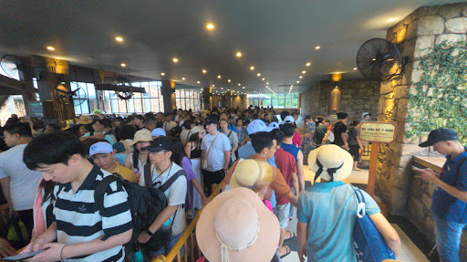 As it was raining all week we decided to take the cable car on the 8 km round journey. We bought tickets and boarded the cable car around 1:50pm Traveled the 4 km to the water park island with the intention to stay on the cable car for the return journey. It was to our surprise we were told we had to exit the cable car at the halfway mark as it stopped running at 2:00.pm We were forced to stay on the island in torrential rain for another hour and a half. Unfortunately at 3:30pm when we went to line up to get back on the cable car 500+ other people decided to leave at the same time. I imagine because of the rain. The complete chaos and lack of respect from selfish people pushing and shoving trying to get to the front of the queue was too much to bear for people like us who don't like big tight pushing crowds. It took us nearly 2 hours to get back on a cable car to get back home. If you only want to do a return trip on the cable car ensure you have enough time to get to the island and back before one of the three, hour and a half long stoppages throughout the day. For a trip that was going to bring us back to the beginning by 2:15pm, it ended up getting us back just before 6:00pm. Unfortunately being a very wet rainy day likely increases the crowds tenfold wanting to come back at 3:30. The water park may be fantastic and the cable car is amazing. But there is no warning we would go halfway and be told we needed to wait another few hours before we could return. The cable car itself is excellent, the island and amenities fantastic. Getting trapped on an island in torrential rain against your will was not something we expected...