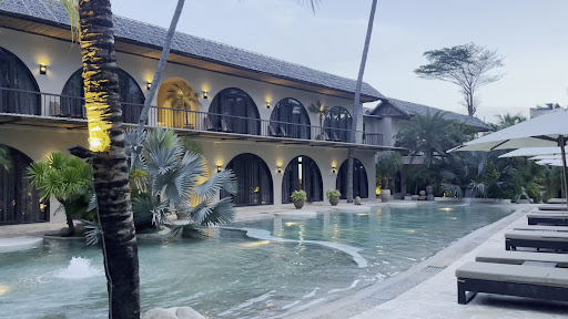 The pool area is stunning – palm trees, arched walls, and rustic décor make it feel like a magazine cover. I also loved the seaside walkway with bamboo ceilings and the restaurant right by the pool, where dining feels so relaxing.