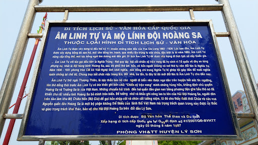 Read moreĐây là nơi thờ cúng các vong hồn bị mất xác ngoài biển (không có mộ - thường gọi là mộ gió) - đặc biệt là các Chiến Sĩ Trận Vong trong cuộc chiến bảo vệ Quần đảo Hoàng Sa (thời VNCH) và là nơi tâm linh - lễ hội của dân đảo Lý Sơn. Bạn hãy đến đây để thắp nén nhang cho những người đã...