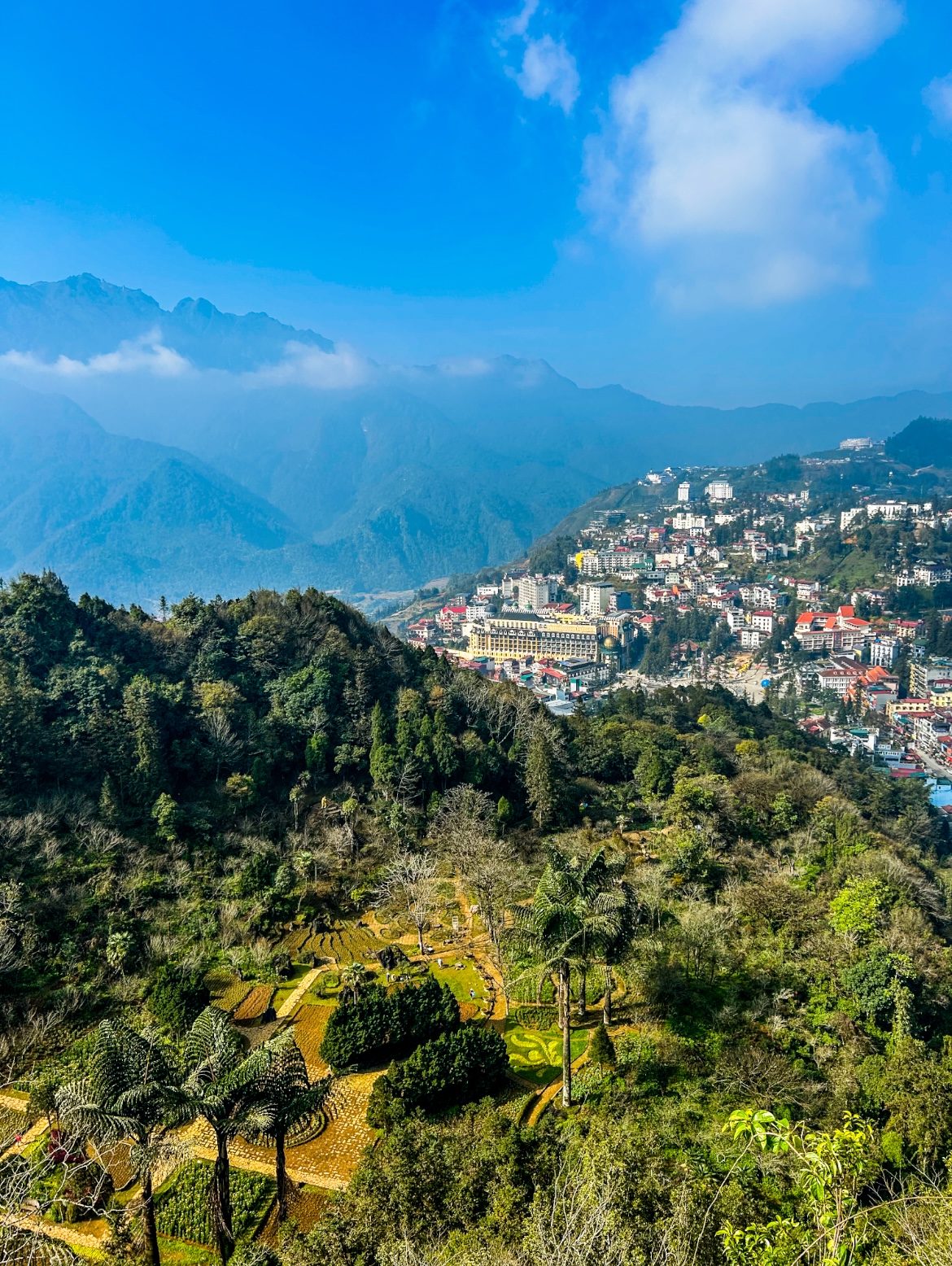 From the summit, the panoramic view of Sapa town, the Hoang Lien Son mountain range, and surrounding valleys is breathtaking, especially at sunrise or sunset.
