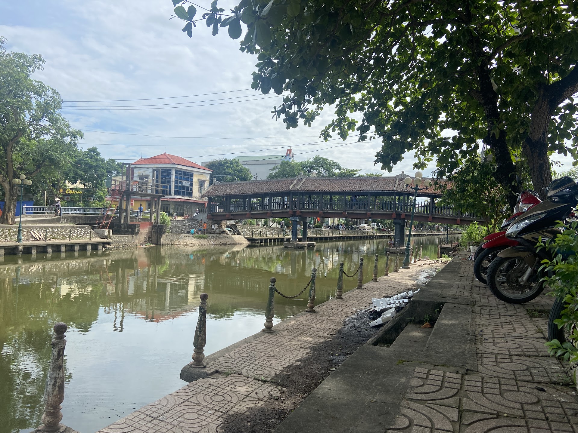 Read moreCầu đẹp, cổ kính, là nơi checkin tuyệt vời. Tiếc là mình k có việt phục. Nhưng bạn nhìn xem, những bức ảnh chụp thật đẹp. Rất nên thơ. Kết chính của cầu được làm bằng bê tông. Mái cầu và lan can bằng gỗ, ngói lợp là ngói ta. Bên dưới là dòng sông chảy lững lờ, thong thả. Nếu nhân rộng mô hình cầu qua sông như vậy thì Ninh Bình nói riêng hoặc Việt Nam sẽ có một màu sắc rất đậm...