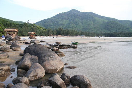 I was a little disappointed when I visited Loc Binh Beach. It was ok, but nothing spectacular. The beach area is quite large, with a rocky bluff outcrop at the far end. The beach area also shares a run-off channel from the inland water bodies....which is a little murky and not very appealing. There is a lady who has a small stall on-site to provide drinks (maybe snacks too??). It's probably good for a splash to cool off on a hot day if you're taking the scenic alternative route between Hue and Da Nang. It's only 4-5km from the turn-off near Tu Hien Bridge, and the road is sealed all the way to the beach. (Just a few patches of loose, slippery sand drifts as you...