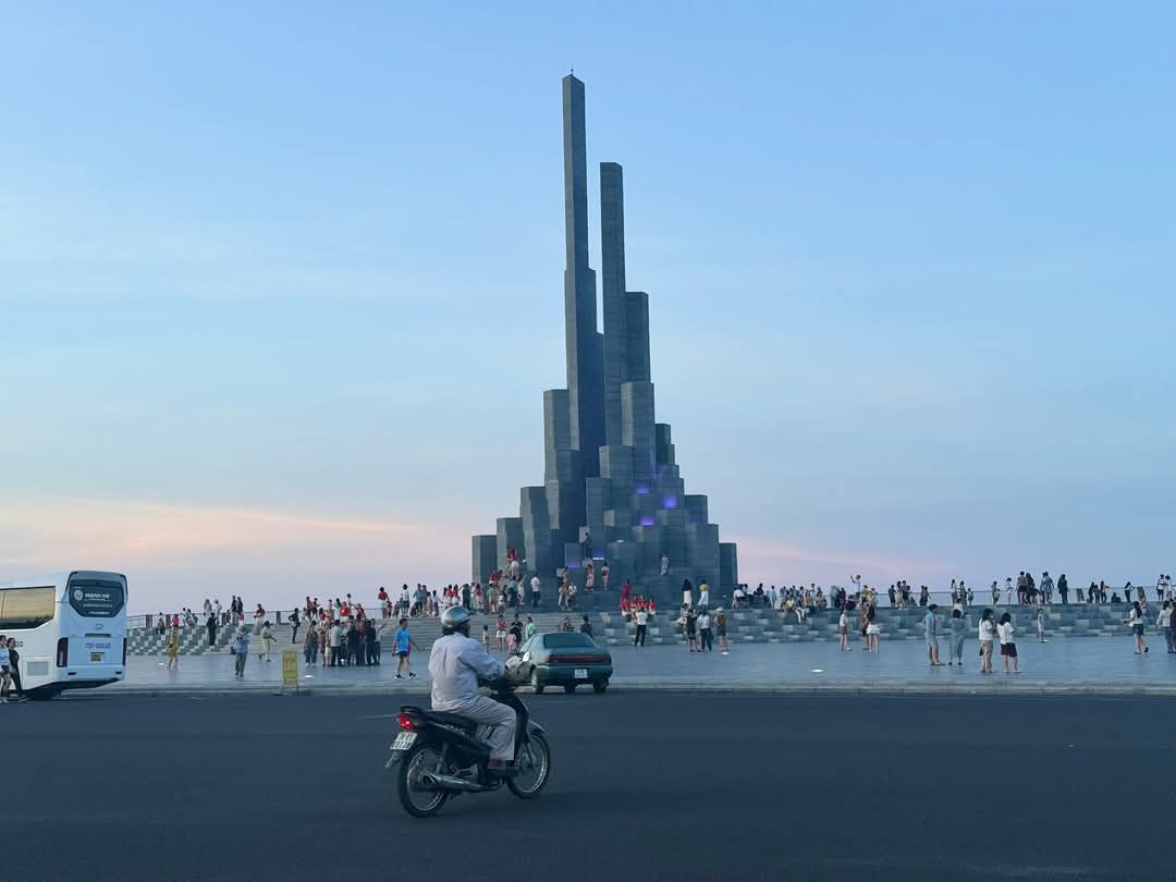 Công trình “Nghinh Phong” với hai trụ đá lớn vươn cao giữa quảng trường, mô phỏng hình ảnh ghềnh đá và truyền thuyết “Con Rồng Cháu Tiên”, không chỉ mang giá trị biểu tượng mà còn là điểm check-in độc đáo thu hút rất nhiều du khách. Khi hoàng hôn buông xuống, cả quảng trường như khoác lên mình lớp áo vàng rực rỡ, gió biển mát rượi, âm thanh sóng vỗ rì rào tạo nên khung cảnh tuyệt vời để thư giãn và cảm nhận trọn vẹn vẻ đẹp miền duyên hải.