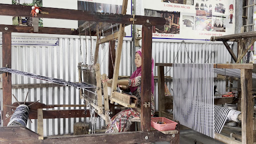 Read moreTôi đến Châu Phong vào chiều muộn, sau khi đi qua phà Châu Giang bạn sẽ bước vào làng Chăm Châu Phong - một làng Chăm cổ ven bờ sông Châu Đốc. Ngạc nhiên đầu tiên là dường như mọi thứ dừng hẳn lại khi đi qua cây cầu vào làng, cảm giác như lạc vào một thế giới khác, chậm rãi và yên bình đến khó tả. Từng tốp đàn ông vận sa rông, đầu đội mũ trắng ngồi trước hiên nhà hóng mát và bàn chuyện, phụ nữ quấn khăn che đầu, có cả mạng che mặt e ấp sau những khung cửa được che bởi một lớp vải thổ cẩm. Nghề dệt thổ cẩm ở đây rất phát triển, màu sắc thổ cẩm nhẹ nhàng và tự nhiên hơn ở vùng núi phía Bắc nhiều. Đi được một đoạn sẽ lại bắt gặp một dàn treo tung lò mò (lạp xưởng bò tươi) ngon tuyệt, do dân làng Chăm không ăn thịt lợn nên lạp xưởng hoàn toàn làm bằng những phần khác...