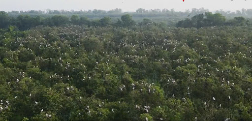 Điểm cuối hành trình là khu vực ngắm cò, nơi hàng trăm chú cò bay tập trung ở tổ (khoảng 11h30 trưa). Khung cảnh vô cùng ấn tượng, vừa nhộn nhịp vừa yên ả, như một bản giao hưởng của thiên nhiên.