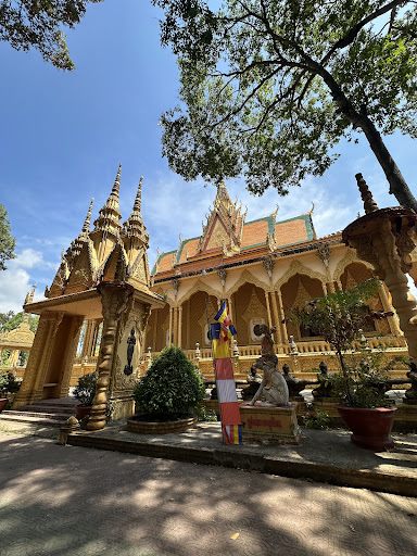 Read moreChùa Vàm Ray tọa lạc tại ấp Vàm Ray, thuộc xã Hàm Tân, huyện Trà Cú, tỉnh Trà Vinh. Chùa nằm cách trung tâm thành phố Trà Vinh khoảng 41km. Chùa Vàm Ray được xây dựng lại từ nền ngôi chùa cũ hơn 600 năm tuổi bị tàn phá trong chiến tranh. Dù xây mới nhưng vẫn mang nét cổ kính truyền thống của Phật giáo Nam tông Khmer. Chùa Vàm Ray mang phong cách kiến trúc Angkor, một kiến trúc đặc trưng của người Campuchia. Chùa có bốn cổng và theo truyền thống của chùa Khmer, cổng chính và tòa chính điện quay về hướng Đông, tượng trưng cho con đường tu hành của Phật tử từ Tây sang Đông. Lối vào chùa Vàm Ray là chiếc cổng hoành tráng sơn màu mạ vàng, đỉnh cổng tạo hình những ngọn tháp nhọn chất chồng nhiều tầng, ẩn mình không gian cây xanh bao quanh khiến cổng chùa càng nổi bật. Giữa sân chùa Vàm Ray có một cột hình trụ cao vút được nâng đỡ bởi những cái cột cách điệu hình rắn thần Naga có 5 đầu, dùng để thắp nến vào những ngày lễ hội, tượng trưng cho việc Phật pháp sẽ soi sáng cho nhân loại, giúp mọi người sống hướng thiện như chính loài rắn đã được đức Phật thuần hóa theo quan niệm của người Khmer. Cột trụ cao vút tượng trưng cho việc Phật pháp sẽ soi sáng cho nhân loại Cửa vào chính điện chùa Vàm Ray được chạm trổ rất công phu, tinh xảo, kết hợp giữa phong cách nghệ thuật chùa và nghệ thuật chạm khắc dân gian, tạo nên nét độc đáo cổ kính. Bên trong chính điện được trang hoàng lộng lẫy với những bức tranh tường nhiều màu sắc, đậm chất văn hóa Khmer. Chủ để xuyên suốt của các tác phẩm là cuộc đời Đức Phật và giáo lý của nhà Phật. Không gian chính điện rộng cao thanh thoát và mát mẻ tạo sự thoải mái cho du khách khi đến tham quan cũng như các tín đồ đến hành lễ. Nhìn chếch về hướng Đông Nam của chính điện là tượng đức Phật Thích Ca nhập Niết Bàn có chiều dài 54m được đặt trên bệ tương đương một ngôi nhà 2 tầng. Toàn bộ tượng và bệ cũng được sơn phủ sơn son thiếp vàng. Tượng đức Phật Thích Ca nhập Niết Bàn có chiều dài 54m Đỉnh cao nghệ thuật của chùa Vàm Ray thể hiện ở những họa tiết độc đáo nơi mái vòm, tường, các hàng cột và cầu thang, như tượng đầu vị thánh bốn mặt Maraprum, nữ thần Kayno nửa người nửa chim, chim thần Marakrit… Công trình kiến trúc đậm chất văn hóa Khmer Không chỉ riêng chùa Vàm Ray, mà tất cả những ngôi chùa Khmer nói chung từ ngàn đời nay vẫn luôn là trung tâm sinh hoạt văn hóa của cộng đồng dân cư trong khu vực. Từ những ngày lễ thuần túy của Phật giáo đến những ngày Lễ, hội đặc biệt của người Khmer như: ChôlChnămThmây, Sêndôlta, Okombok, Lễ dâng y…đều được diễn ra tại chùa và gắn liền với các hình thức văn hoá truyền thống của dân tộc và các trò chơi dân gian, thu hút đông đảo du khách...