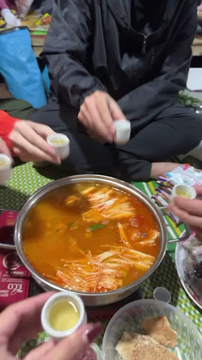 Đồ ăn nước uống phục vụ tận răng, kể cả đánh răng buổi sáng cũng nấu nước ấm cho mọi người- lần đầu tiên được phục vụ thêm nước gừng ngâm chân vào buổi tối sau khi ăn xong ( bạn Sồng Nênh tâm lý lắm nha , nói cả ngày mọi người leo núi nên ngâm chân cho khỏe để mai sáng leo lên đỉnh) 😛