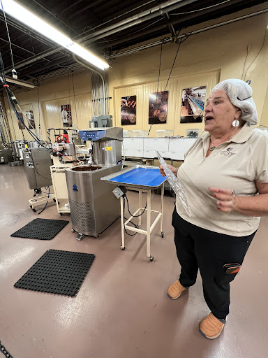 Our tour guide was an older lady named Melanie. Unfortunately, from the very beginning of our tour, her attitude and disposition towards us was brash and offputting. Each of our children were well-behaved, and were quietly sitting in their seats as expected. This did not keep Melanie from pointing at us and continuously reminding of us of all the rules and regulations…not the least of which were the sanitary restrictions and standards that had to be met at all costs. Despite these guidelines, Melanie repeatedly stopped throughout the tour because she had a bad cough. So after every few sentences she would pause, turn to her side, and hack into her arm. Never once bothering to put on a mask or take any other precautions. Just an idea, but if you have a cough, it probably isn’t a good time to give tours of a chocolate factory. In fact, you should probably stay away from food production altogether.