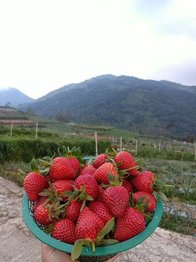 Baiklah mendaki ke bukit area sayuran hehe, agak panas alhmdulillah bawa air mineral sama, wafer, strawberry beli dijalan lebih asik kl metik langsung ,cuma sekitaran kayaknya belum banyak numbuh starberry nya,tapi liat ada orang pd metik sama petaninya. View dari atas sini lumayan juga kok memanjakan mata hehe