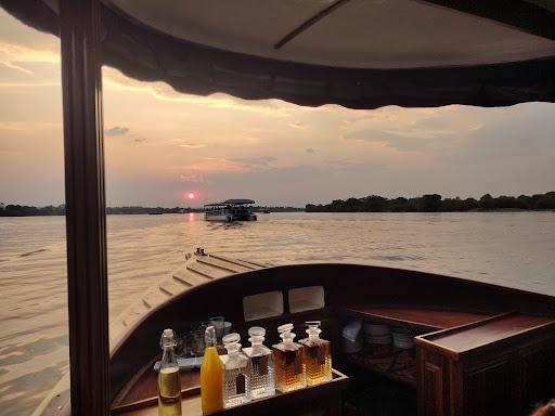 We went on the sunset cruise down the Zambezi. The scenic views were amazing. The cruise came with unlimited drinks including soda water beer wine and spirits. Service was good. There are two seating floors and you will find out your assigned deck upon entering the boat.