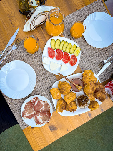 Read moreWe stayed here 1 night before our Theth to Valbonë hike and it was wonderful. ||GETTING THERE ||We arrived in the minibus from Shkoder (booked with Northern Albanian Alps tour company), which parks in the "Centre" of Theth, and is about a 15 min walk to the guest house. It's an easy walk on a main rocky road along the river with our backpacks.|| We arrived too early for check in, but the hosts were very welcoming and provided coffee and offered to store our backpacks until check in. They arranged a taxi for us to the Theth Blue Eye trailhead (saved us 2 hours 😅). ||ROOM||The beds were comfortable, room was clean and had a radiator for warmth at night. The view from our room in the main building we had was partially obscured by their second floor addition over the dining room, but could still see the beautiful mountains! ||FOOD||The food was excellent (violeta made the best petula we've had in Albania in 2 weeks!). It's traditional guesthouse style - you sit and they serve you an abundance of traditional foods - cheese, meat, bread, and vegetables and fruit. We could eat dinner between 7-9, and breakfast started at 7am which was great to get started on our all day hike. We asked the night before and they packed us a lunch for our hike as well. ||Breakfast was included ( including coffee), and lunch and dinner + day time coffees are paid to the hosts. We paid about 2000 lek for 2 dinners + 2 lunches. ||IN THETH ||The guesthouse is well located - easy 15min walk from the centre/bus parking for arrival, easy walk to the Reconciliation Tower and Theth church, accessible to the road to either walk to the Theth Blue Eye (far!) or grab a taxi to the trailhead for 500 lek, who we arrange to come back to get us 3 hours later which was good timing.||To hike to Valbonë in the morning, it's at 15 min walk back to the centre where the trail starts, so it does add an extra couple KM to your day hike but not much and honestly it's a nice warm up on flat road before the incline immediately starts...
