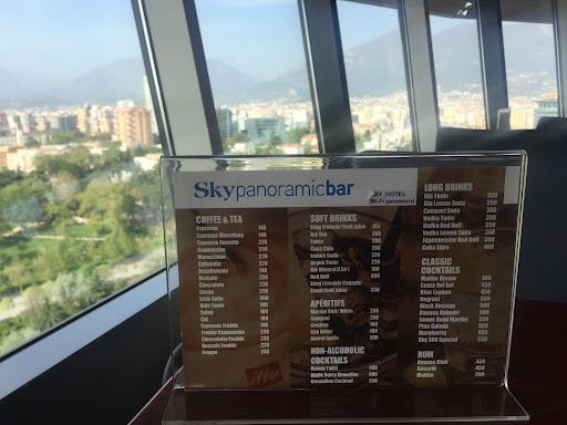 Read moreTo be clear, this review relates to the Sky Tower attached to the hotel, not the hotel itself. It is free to go to the Sky Tower. The 1 star is because of the amazing views over Tirana and the Dajti Mountains in the background. We had the Sea and Earth Tapas. The food was awful, the chicken was overfried, so very dry and chewy. A few prawns on a piece of cold, soft toast doesn't cut it. It was absolutely awful and definitely the worst food we had in Tirana. The service was dreadful. We asked for a menu, and without speaking, the waiter pointed to the code on the table. You can not order from this. Just view the menu. Then you have to wait for the waiter to come back to thevtable to take the order. Despite not being busy, this took forever. Most of the transaction was done in complete silence by the waiter. It was very unfriendly and...
