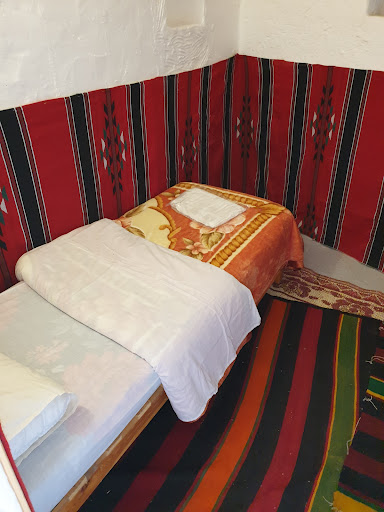 Dès notre arrivée à Tajami, le 24 décembre 2022, vers 18h, nous avons été accueillis de manière très conviviale, avec des dattes et du petit-lait. Aussitôt installés dans les chambres, nous avons constaté la propreté des sanitaires; un très bon point. Il est à noter que certaines maisons d'hôtes sont dotées de toilettes communes. Donc là, c'est tout à fait comparable à une chambre d'hôtel, avec toutes les commodités d'usage. La chambre est spacieuse et joliment tapissée. La présence d'un tronc de palmier donne, une touche particulière d'exotisme, à la chambre. Dans la salle de bain, il serait judicieux d'aménager plus de supports, pour déposer nos trousses de toilette . Pour les serviettes de toilette, il y en a mais pas suffisamment; donc, je conseille, aux clients, de ramener un jeu, avec eux. Sinon, vu le rapport qualité/prix, ne faisons, quand même, pas la fine bouche.