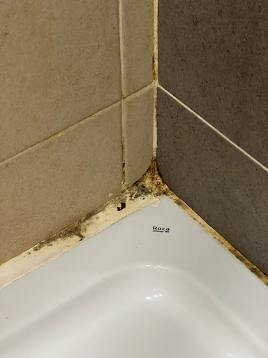 ((3)) Des fuites ont eu lieu au niveau de ma douche et de la douchette des toilettes... Les serviettes de douche ont finalement servi de serpillère pour absorber les fuites d'eau.