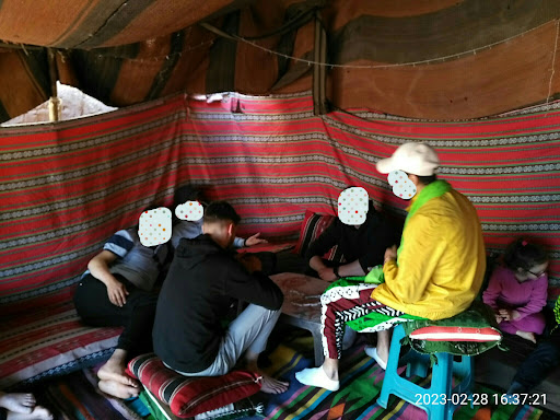 La maison d'hôtes Le palais d'or dispose d'une belle tente " Khayma خيمة " où l'on a passé d'excellents moments avec toute l'équipe du Palais d'or, soirée ambiance sahraoui avec la musique et les jeux de sociétés