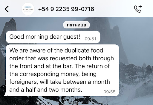 Read moreThe price/ quality ratio for this hotel is totally out of whack, even for southern Patagonia. It desperately needs a major upgrade to continue charging the top rate in town. In our lake view room the ancient carpets were loose, the bathroom was mouldy and smelled bad, the TV was from another era, and the decor was 1980s. ||That lake view? It’s there in the distance, across a very busy, noisy road which is right outside your windows and will keep you up all night as all the traffic that passes through Calafate uses this thoroughfare. And if it doesn’t, the total lack of soundproofing between rooms and floors will stop you from sleeping. We could hear our neighbours on the phone, watching TV, using the bathroom, and having a big argument in the middle of the night.||The number one requirement of a hotel is to provide a sound night’s sleep. It’s impossible at this hotel, even at a cost of $300. Stay anywhere else.||(I’m scoring 2 rather than 1 because Juan on the reception was friendly and helpful and there is parking. Those are the only two...